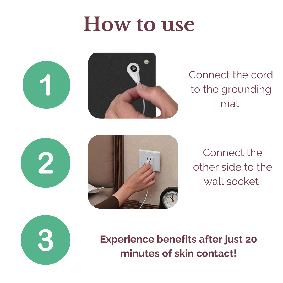 Grounding mats are designed to connect you to the Earth’s natural energy, simulating the effects of walking barefoot on soil or sand. By connecting to the Earth’s electrons, grounding can help balance your body’s electrical charge, promoting overall well-being. Just plug in the grounding mat to a grounded outlet, place it on the floor, or set it on your desk or bed, and allow its natural effects to flow.